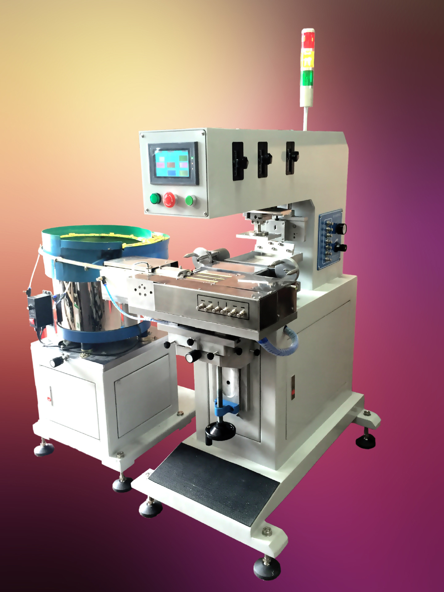 吸油墨與油墨移印機印產(chǎn)品 膠頭吸上蝕刻板上的大部分油墨后上升,此時,這層油墨又揮發(fā)一部分,剩下一部分未干的油墨表面更利于被印刷物體與膠頭的緊密結(jié)合。膠頭的造形要能產(chǎn)生一個滾壓動作,以排盡蝕刻板與油墨表面的多余空氣。